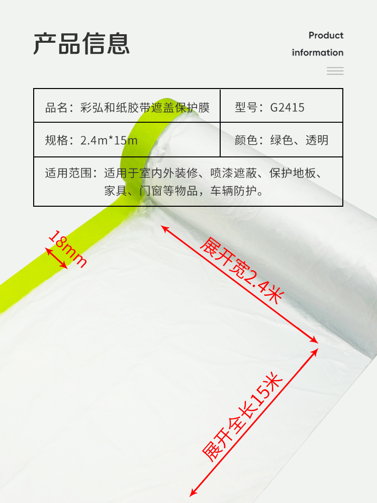商品名称:彩弘 2.4M×15M 装修美纹纸 遮蔽胶带
