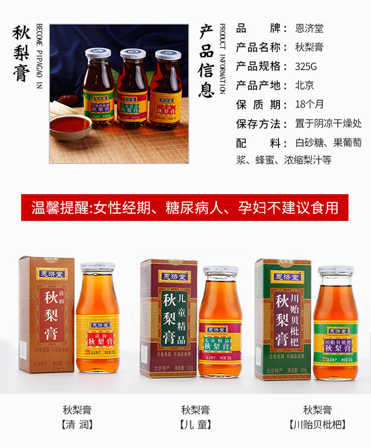 商品名称:恩济堂 清润秋梨膏325G-无添加剂系列