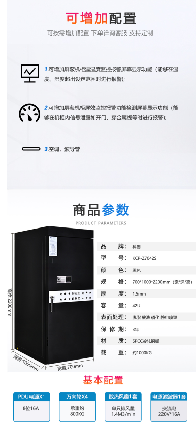 商品名称:科创 KCP-Z7042S C级电磁屏蔽机柜 700×1000×2200MM