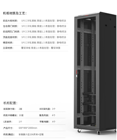 安普康 AMPCOM AM6842 42U加厚型机柜 19英寸 600×800×2000
