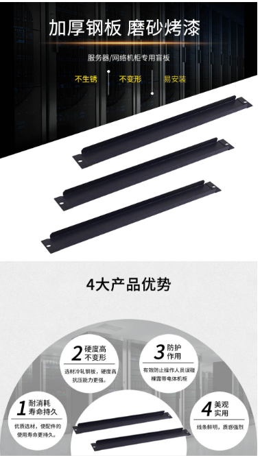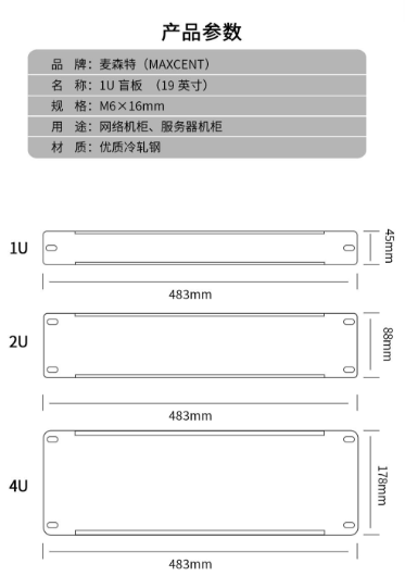 商品名称:麦森特 MAXCENT 19英寸机柜面板 黑色 1U背板盲板