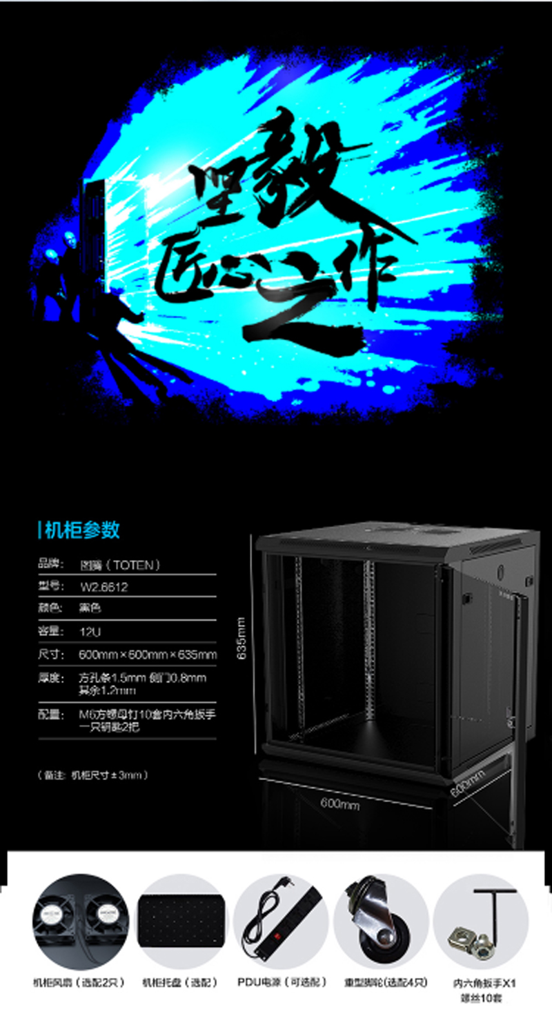商品名称:☆图腾 TOTEN W2.6612挂墙柜19英寸12U小机柜灰白色