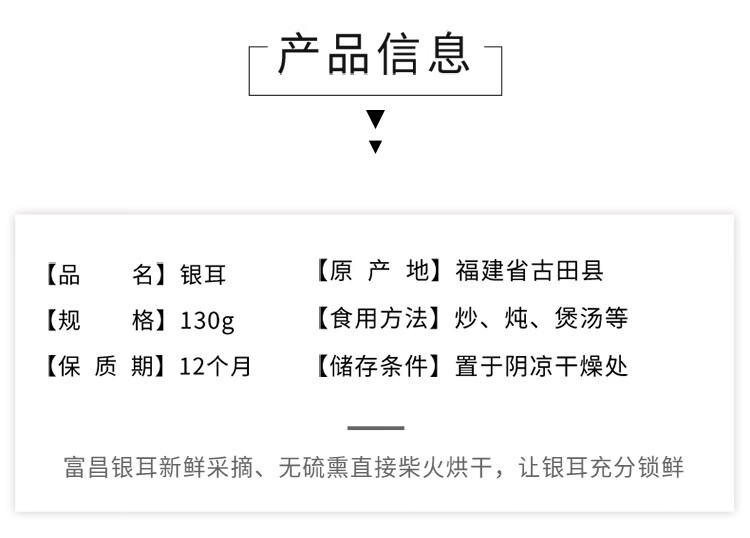 商品名称:富昌 福建古田银耳 白木耳 130G