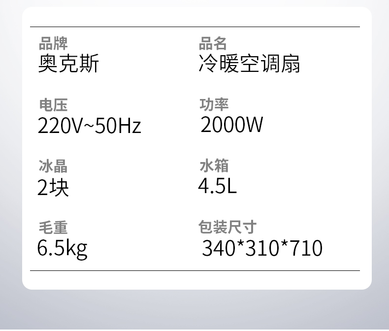 商品名称:奥克斯 AUX 冷暖冷风扇/空调扇/电风扇/取暖器NFS-20J
