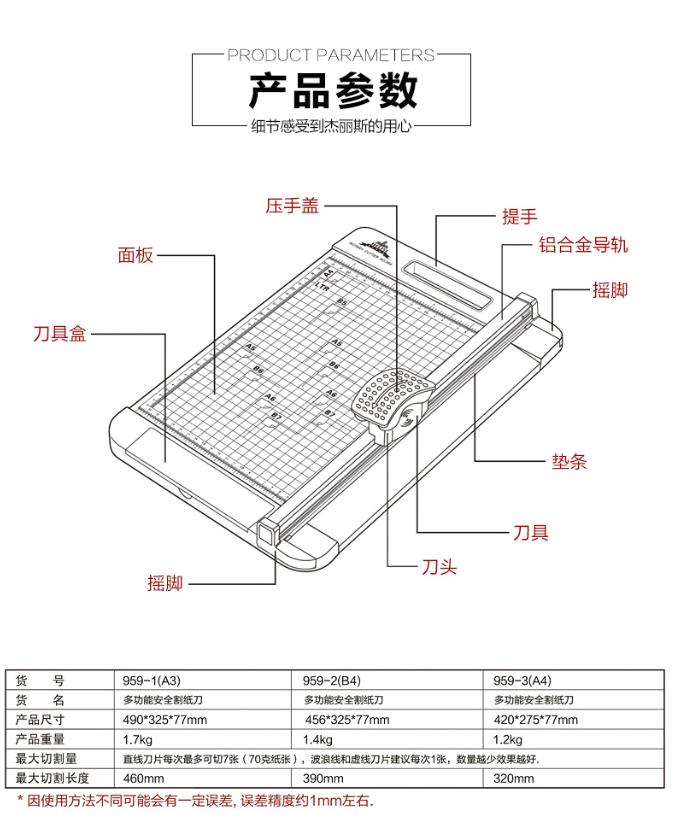 商品名称:杰丽斯 959系列切纸机 多功能裁纸刀 直线虚线切纸刀 波浪线裁纸机 A3规格959-1