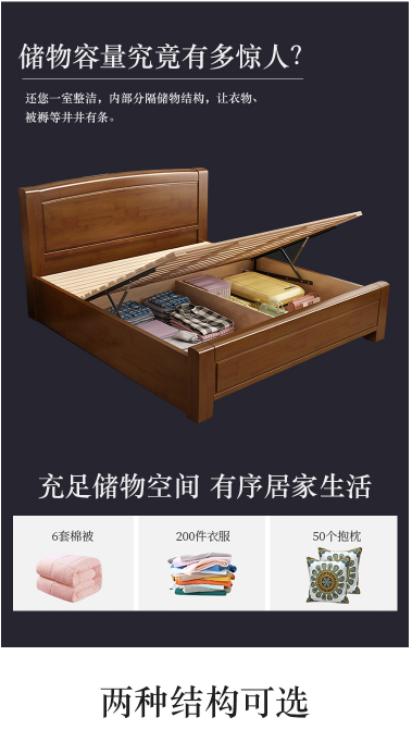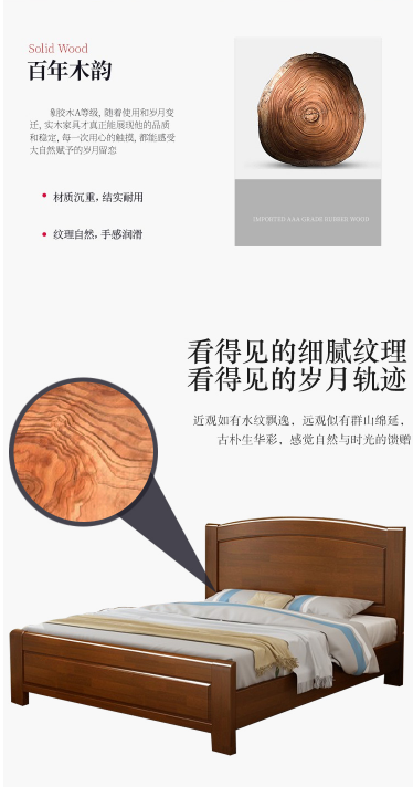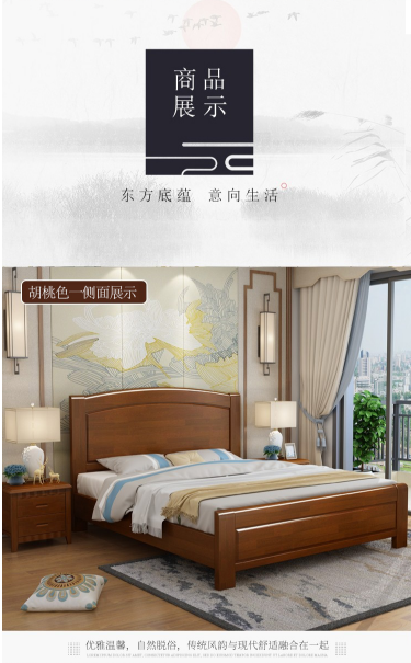 商品名称:尊禾 实木中式双人床 【胡桃色-床+床头柜×2+棕垫×1】 【进口实木-1500×1900不可储物】