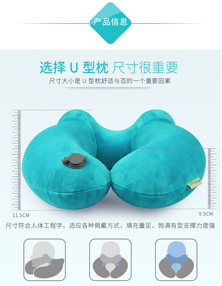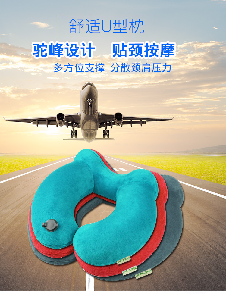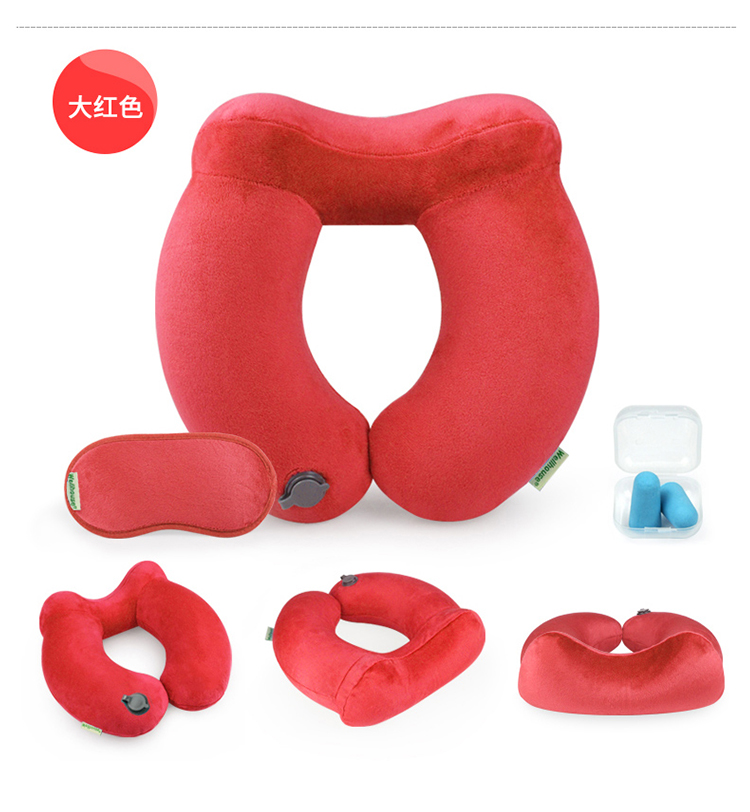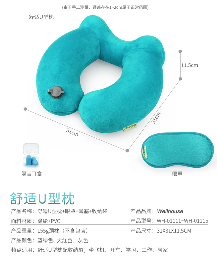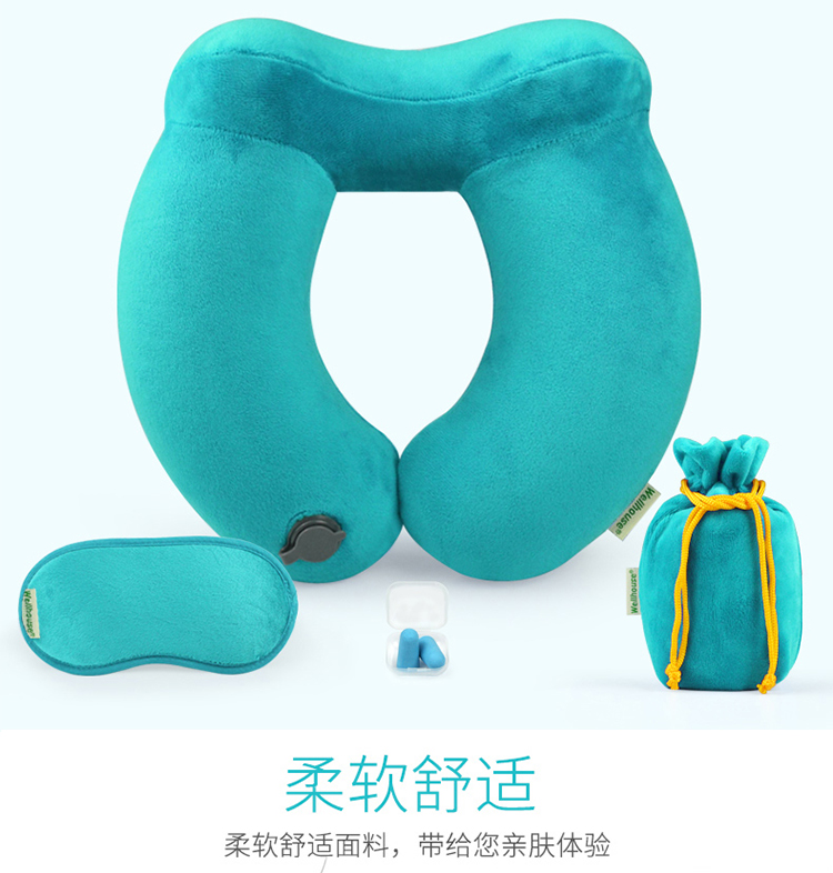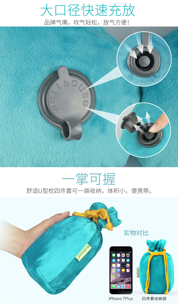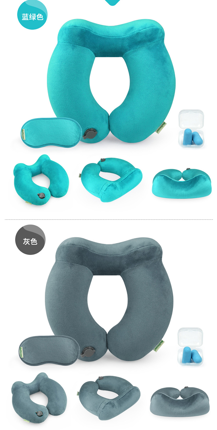 商品名称:Wellhouse 棉绒充气U型枕护颈枕旅行4件套装眼罩耳塞收纳袋便携旅游睡眠飞机靠枕 灰色