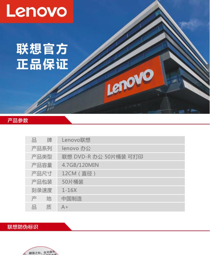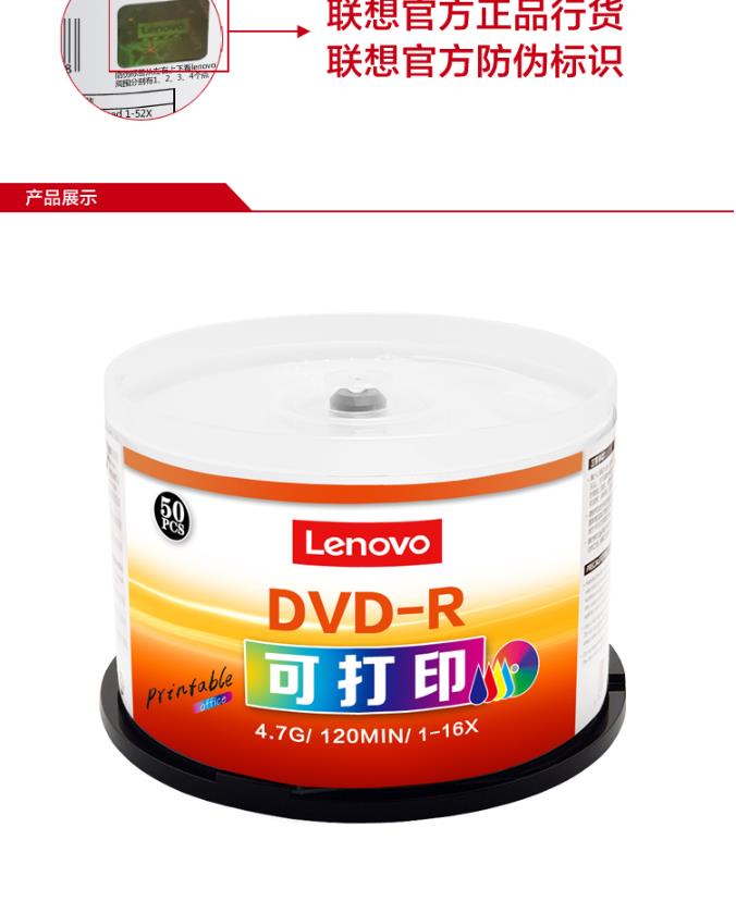 商品名称:联想 LENOVO DVD-R 空白光盘/刻录盘 16速4.7GB 桶装50片