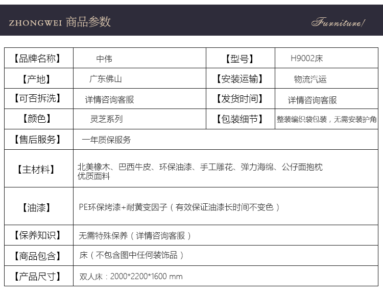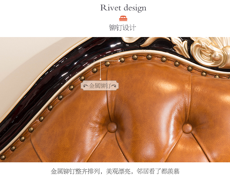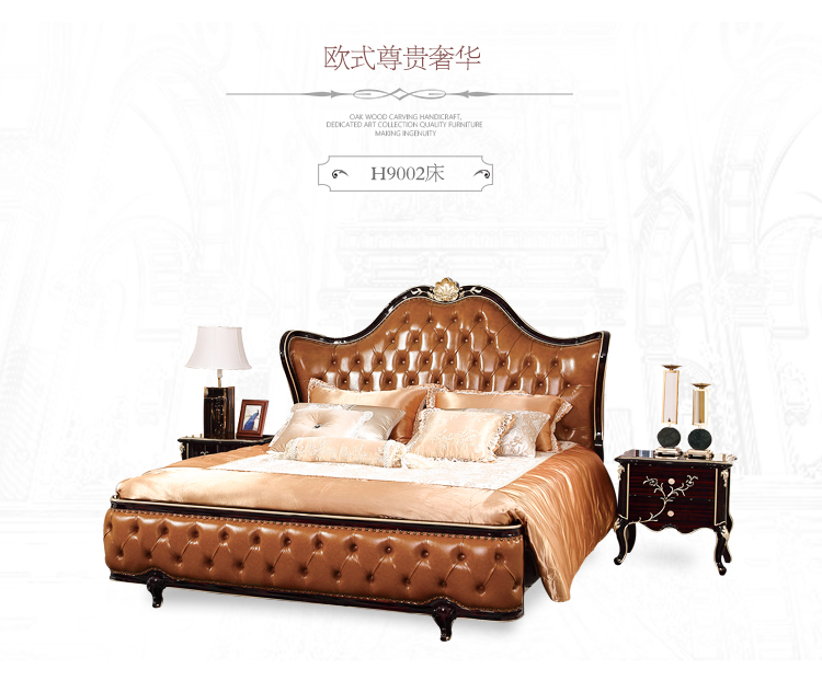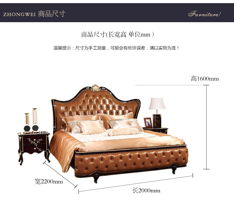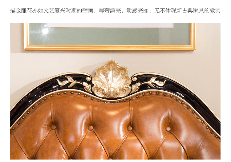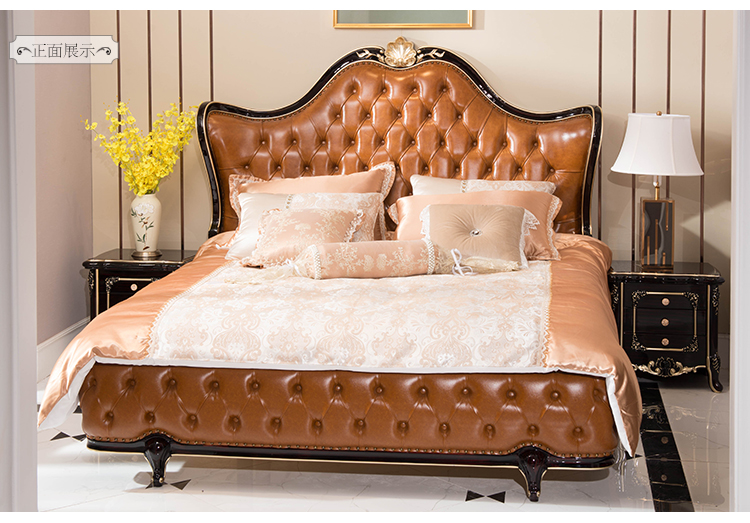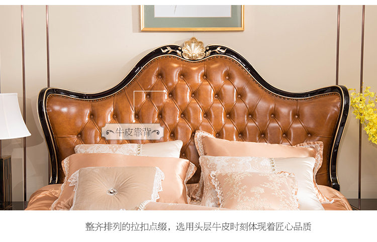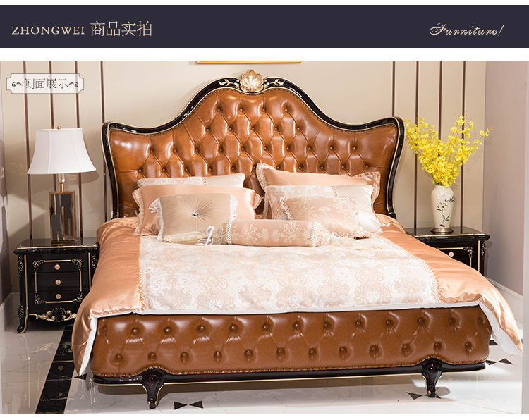 商品名称:中伟 ZHONGWEI 欧式床皮床双人床婚床公主床实木皮床尾-单床咖啡色