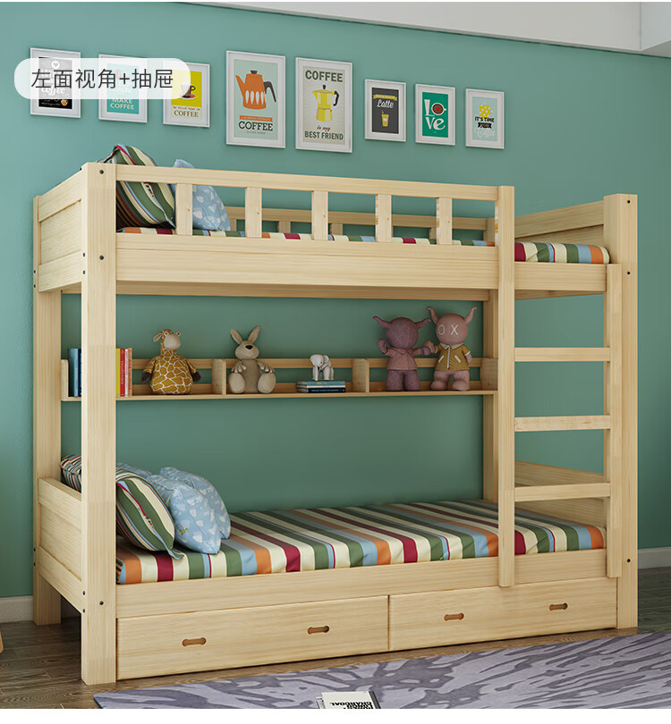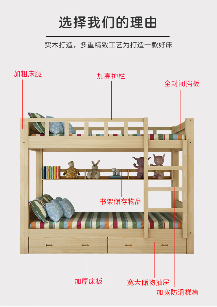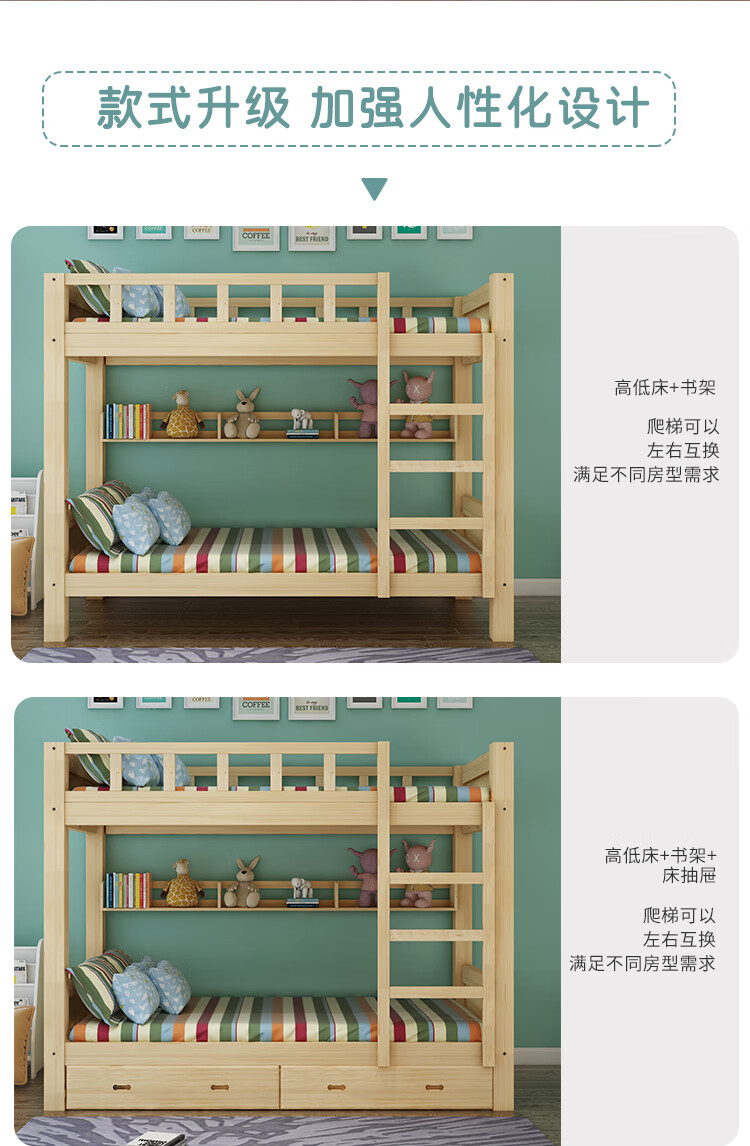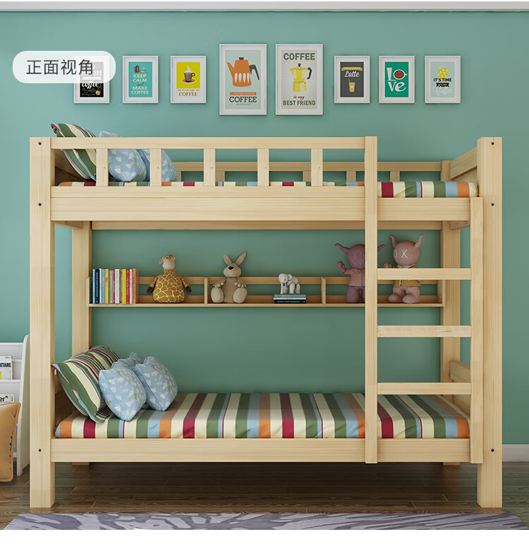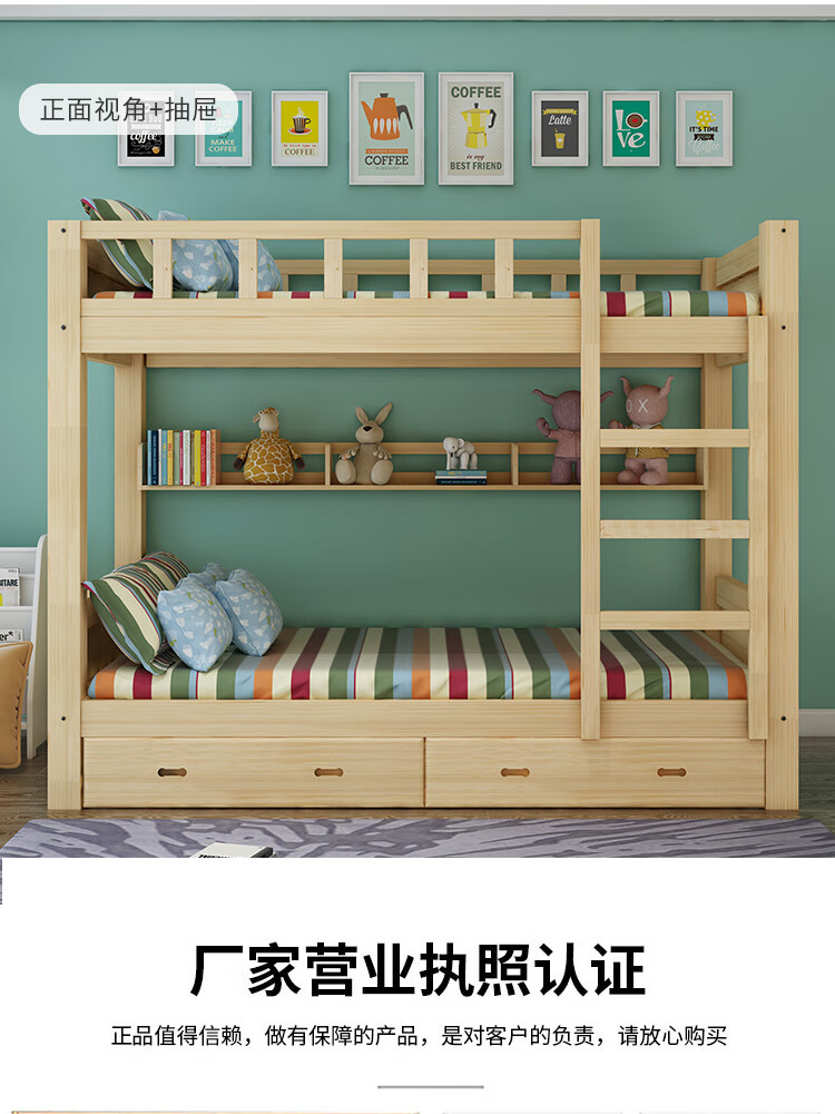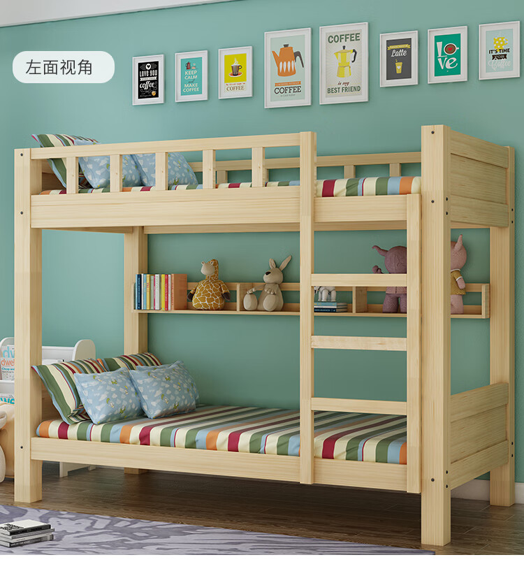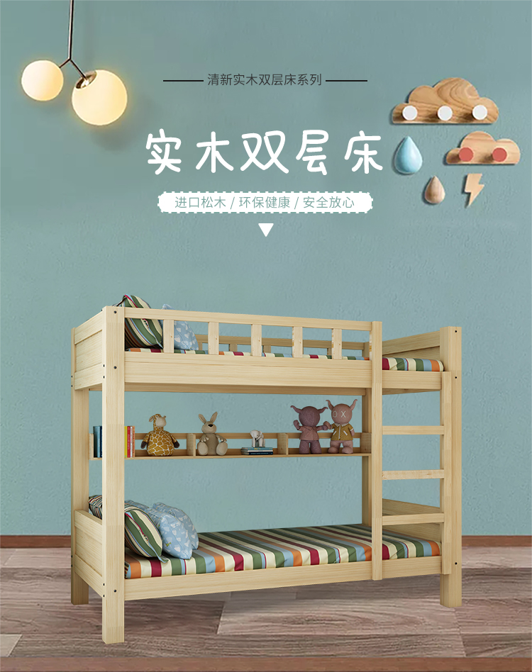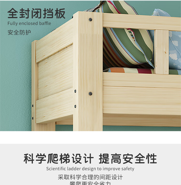 商品名称:中伟 ZHONGWEI 高低床双层床松木床简约宿舍床成人床组合母子实木上下铺公寓床原木色2000*1500*1600