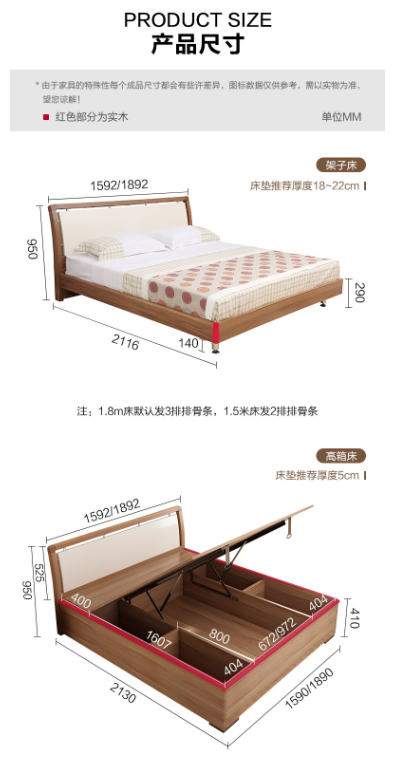 A家 A002-180 家具 床 现代简约板式床 实木床 1.8米双人床