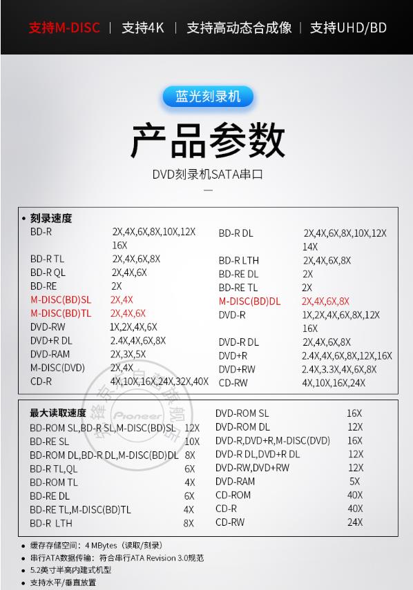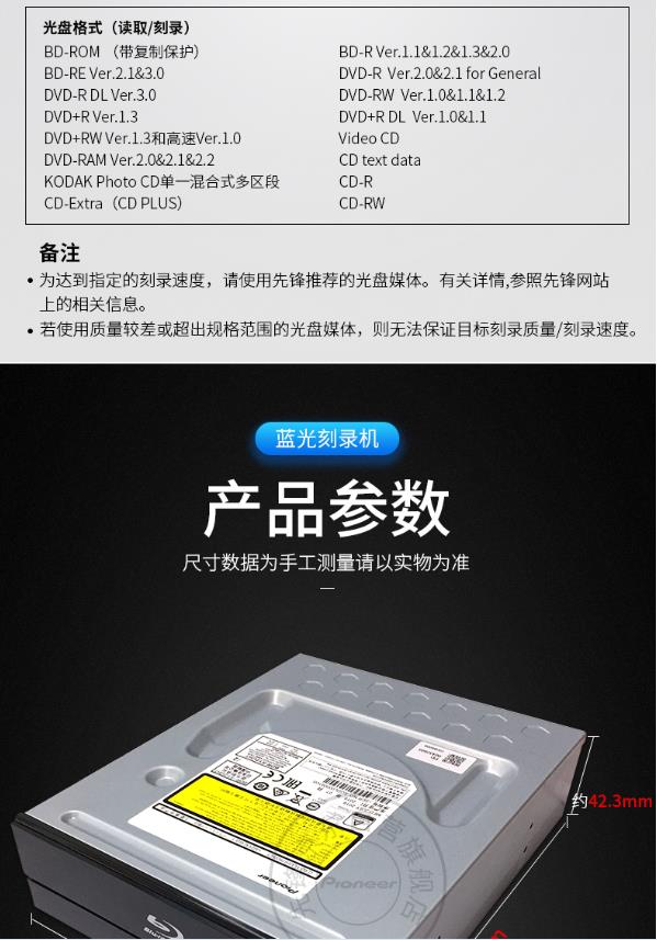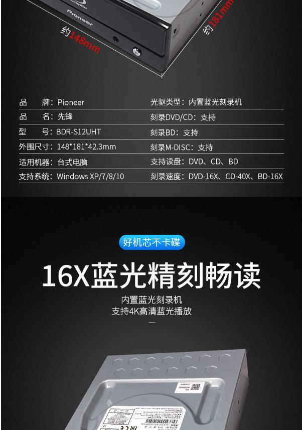 商品名称:☆ 先锋/PIONEER 16X 内置蓝光刻录机 支持4K 支持高动态合成像 支持UHD/BD 蓝光刻录机/BDR-211EBK