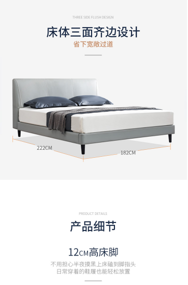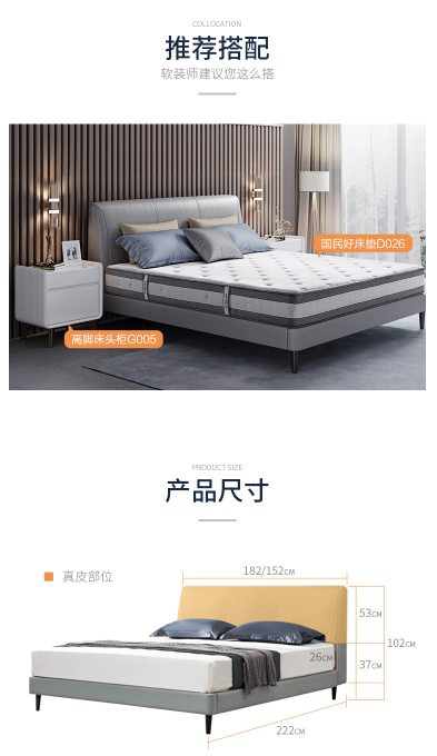 商品名称:芝华仕 CHEERS C035 简约意式卧室双人床 驼色1.8×2米