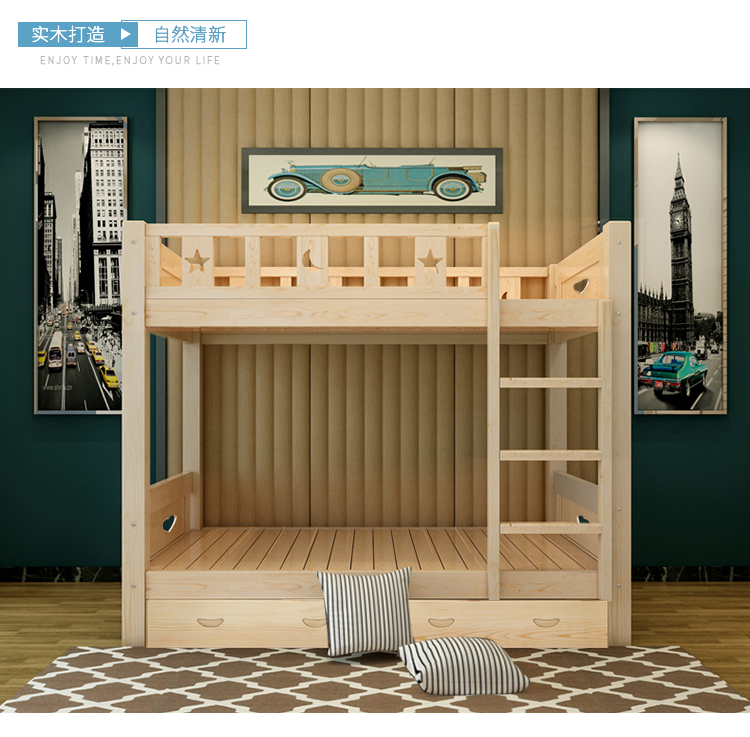好事达 易美 044 定制实木儿童床 双层子母床 学生员工宿舍1.2M带抽上下铺