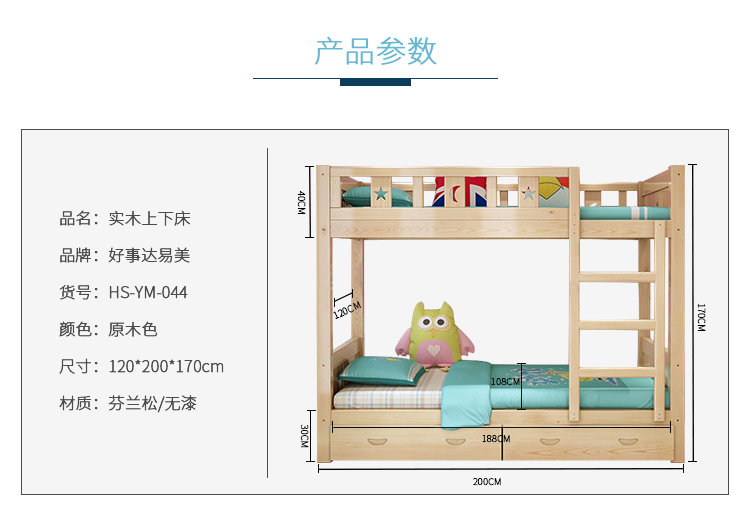 商品名称:好事达 易美 044 定制实木儿童床 双层子母床 学生员工宿舍1.2M带抽上下铺