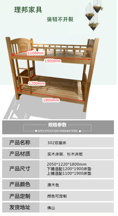 商品名称:理邦 1.2米实木双层床学校员工宿舍高低床