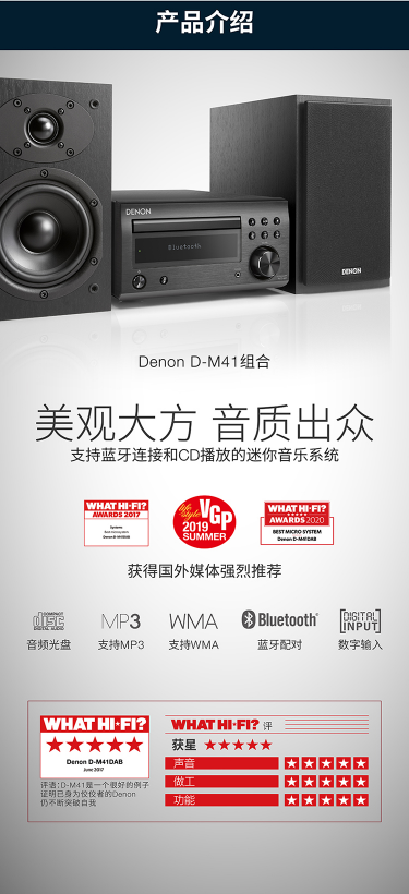 商品名称:天龙 DENON RCD-M41音响音箱迷你音响CD机HIFI组合套装2.0声道蓝牙家庭音响黑色