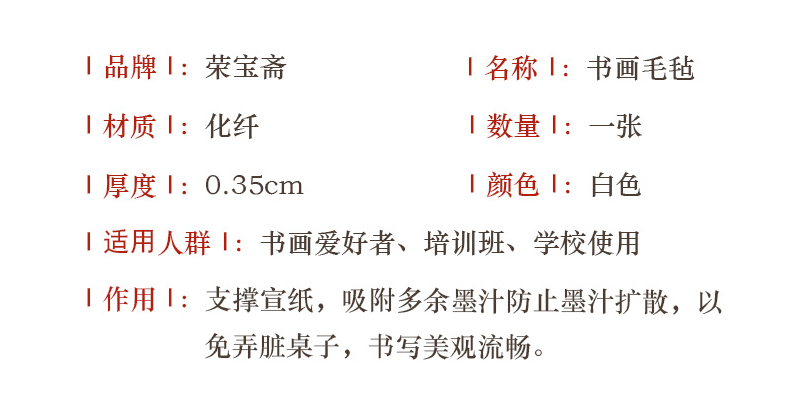 商品名称:荣宝斋 毛毡垫 白色 70CM*100CM
