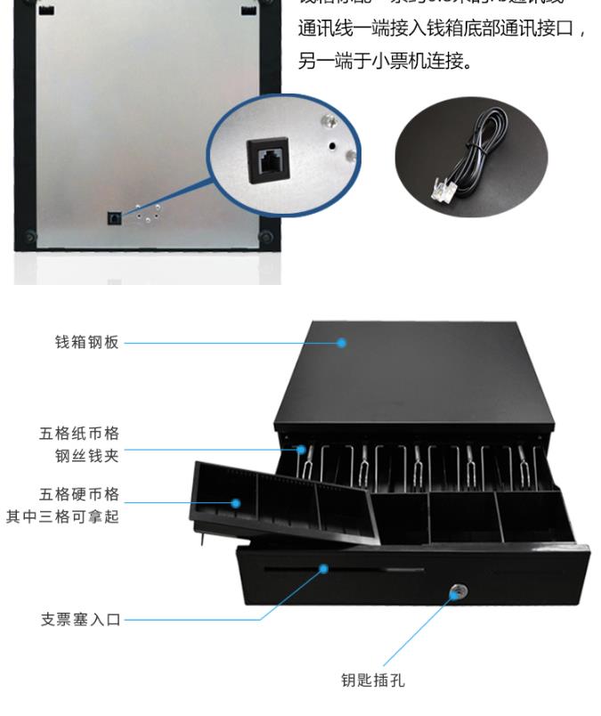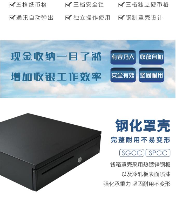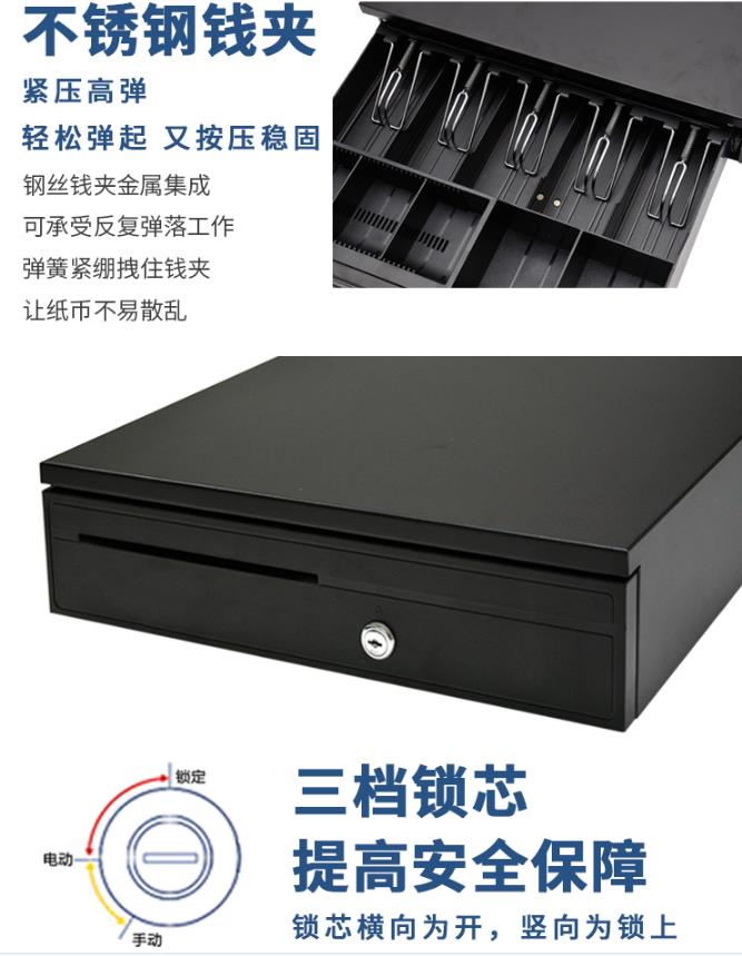 商品名称:浩顺 HYSOON HS-405钱箱收银箱触摸屏收款箱五格三档 带锁 黑色