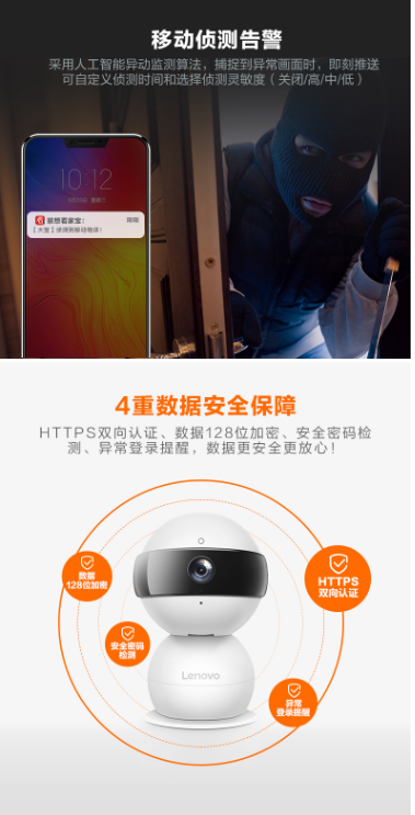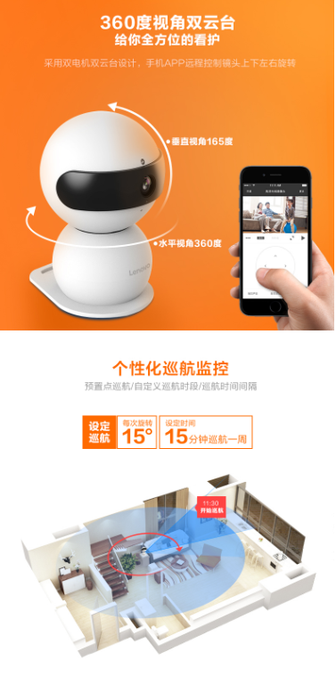 商品名称:联想 LENOVO 看家宝 1080P旗舰版云台高清智能网络摄像头 360度旋转巡航无线WIFI夜视手机监控家用摄像机