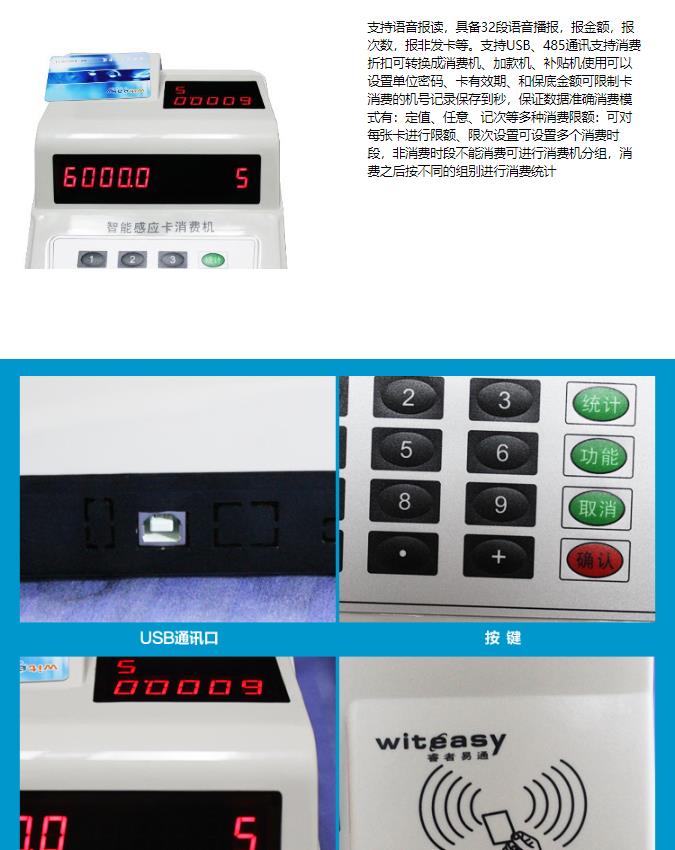 商品名称:睿者易通 WITEASY YT-660USB 智能语音消费售饭机 USB通讯 请选择购买易通IC卡