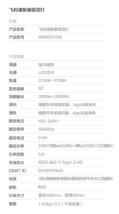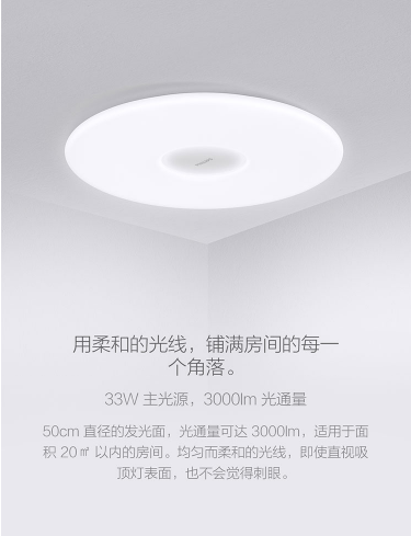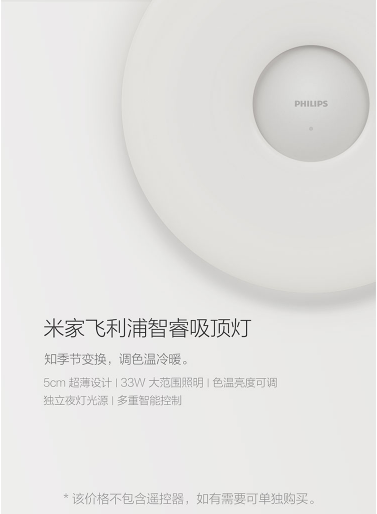 商品名称:米家 MIJIA 飞利浦智睿吸顶灯大范围照明色温亮度可调独立夜灯光源多重智能控制