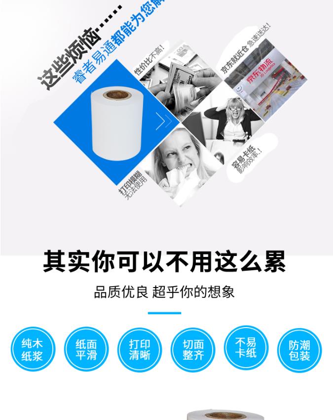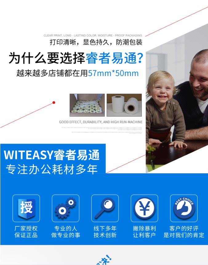 商品名称:睿者易通 WITEASY 57*50MM热敏小票打印纸 100卷/箱 收银纸 超市收款机票据纸 收银机小票纸