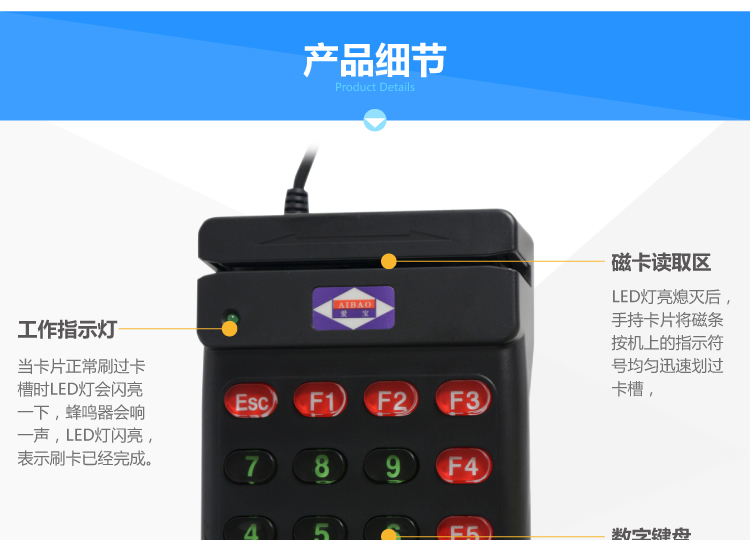 商品名称:爱宝 AIBAO ST-700 (黑) 磁条磁卡读卡器 刷卡器 会员卡刷卡器