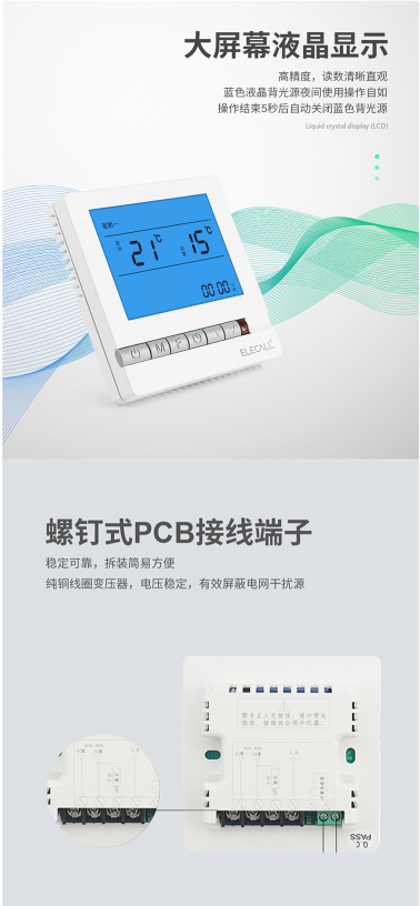 商品名称:伊莱科 温控器 白色 适用于水地暖壁挂炉 16A 不带外置线