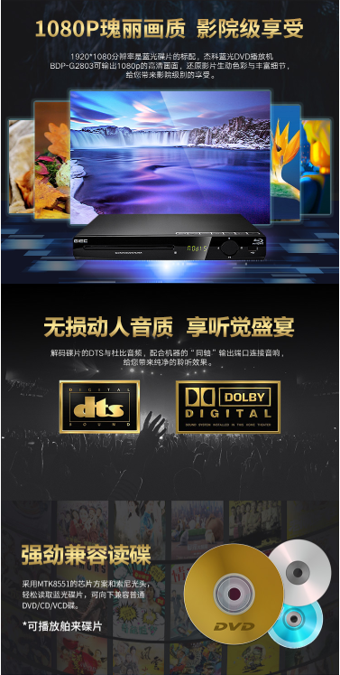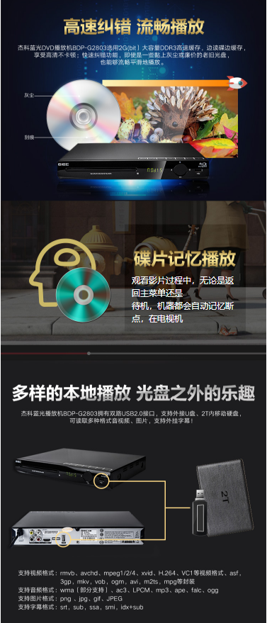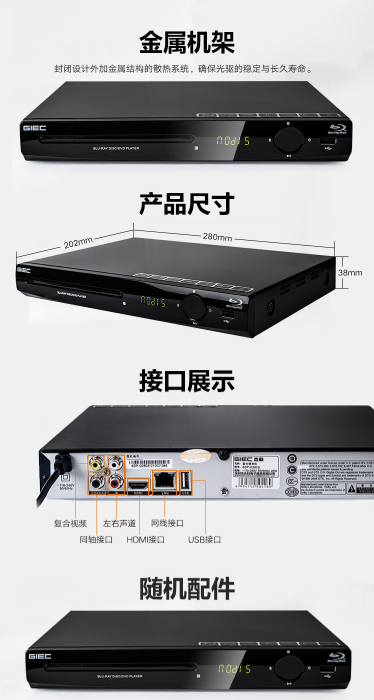 商品名称:杰科 GIEC BDP-G2803网络版 蓝光dvd播放机 影碟机 USB 光盘 硬盘 高清网络播放器(黑色)