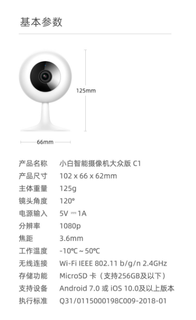 商品名称:小白 智能摄像头 小白大众1080P