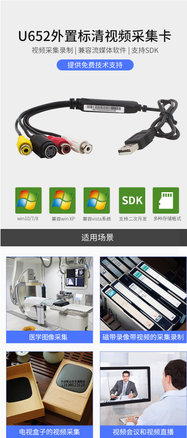 商品名称:天创恒达 U652 视频采集卡 支持SDK开发