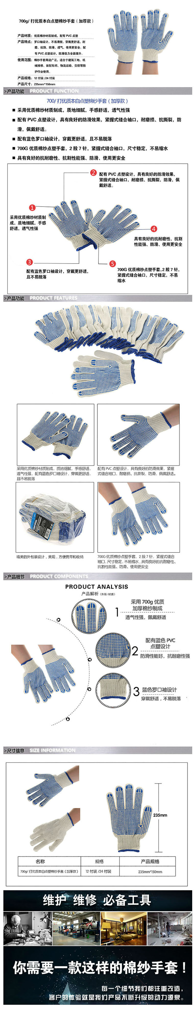 国产 棉纱胶点防滑手套