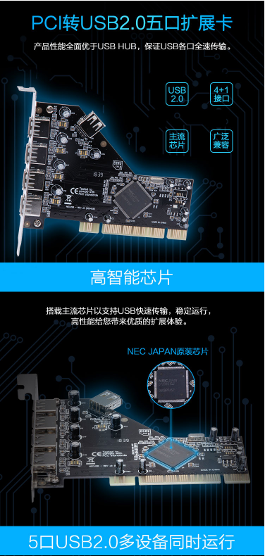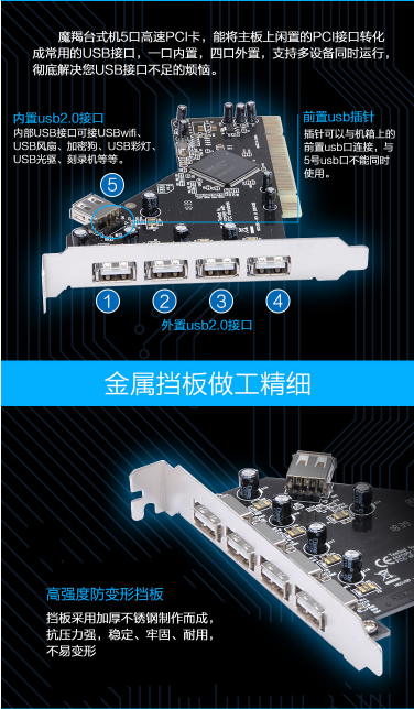 商品名称:魔羯 MOGE PCI转5口USB2.0扩展卡 MC1010 台式电脑主机后置5口USB2.0转接卡