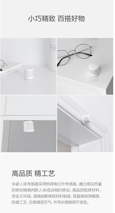 商品名称:米家 MIJIA 米家人体传感器小米智能家居套装智能监测人或宠物移动警戒模式移动侦测报警
