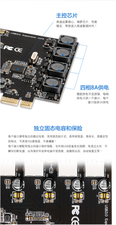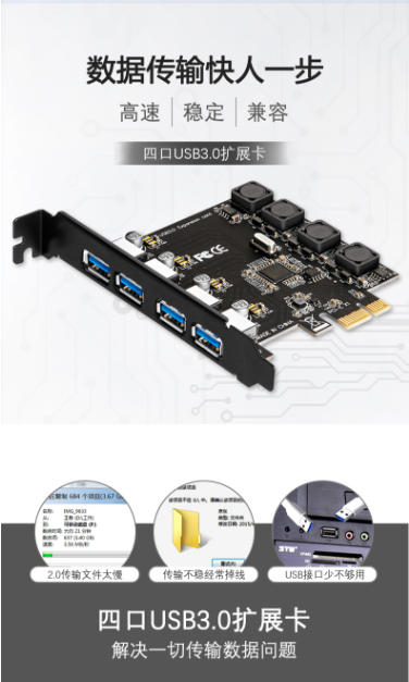 魔羯 MOGE MC2016 台 式机PCIEX1转4口USB3.0独立供电扩展卡 瑞萨 NEC 芯片
