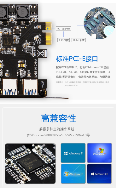 商品名称:魔羯 MOGE MC2016 台 式机PCIEX1转4口USB3.0独立供电扩展卡 瑞萨 NEC 芯片