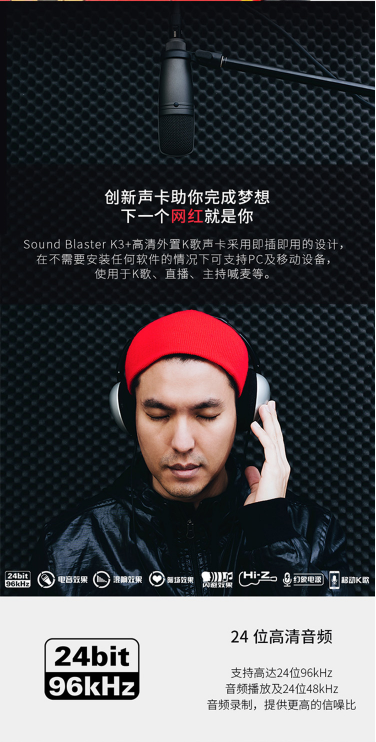 商品名称:创新科技 CREATIVE SOUNDBLASTER K3+ 高清外置K歌声卡 主播 网红直播专业声卡 电脑手机通用声卡
