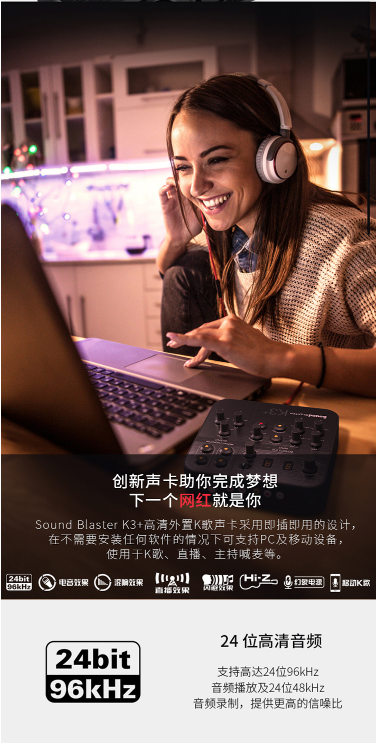 商品名称:创新科技 CREATIVE SOUNDBLASTER K3+高清外置K歌声卡 主播 直播 专业声卡 电脑手机通用声卡