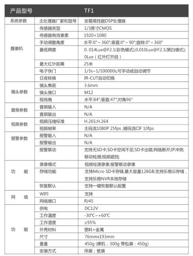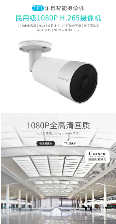商品名称:乐橙 LECHANGE TF1智能网络监控摄像头 无线WIFI室外防水防尘手机远程高清1080P家用一体摄像机