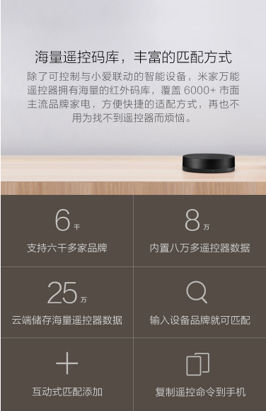 商品名称:米家 MIJIA 米家万能遥控器 支持与小爱同学互联语音控制