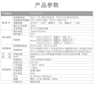 型号: TD1 2.8MM 1080P