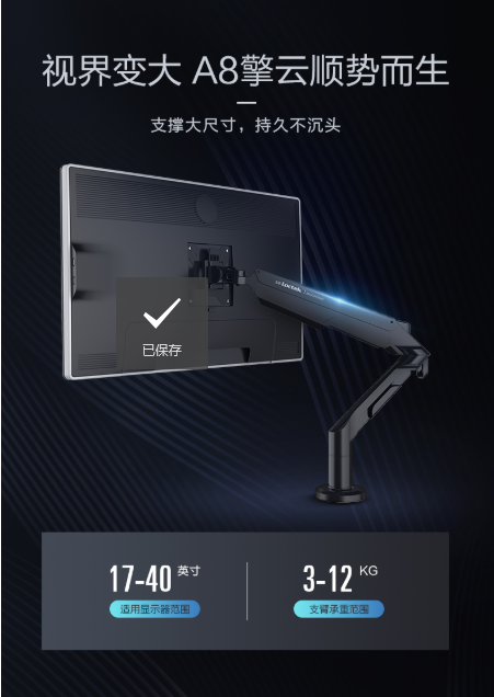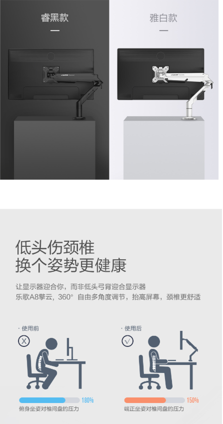 商品名称:乐歌 LOCTEK 擎云-雅白A8 显示器支架 可旋转升降免打孔
