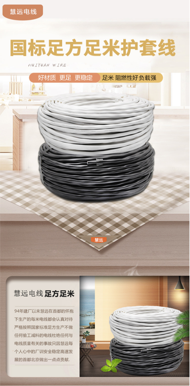 商品名称:慧远 RVV2-2.5 护套电线 2芯2.5平方 50米/卷 白色护套