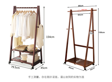 商品名称:家逸 落地衣帽架实木松木三角挂衣架简约晾衣架可移动衣架 白色