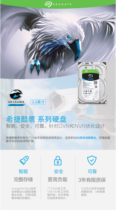 希捷 SEAGATE 酷鹰SKYHAWKAI系列 ST12000VE0008 12TB 256MB 7200RPM 监控级硬盘