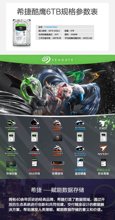 商品名称:希捷 SEAGATE 酷鹰SKYHAWKAI系列 ST12000VE0008 12TB 256MB 7200RPM 监控级硬盘