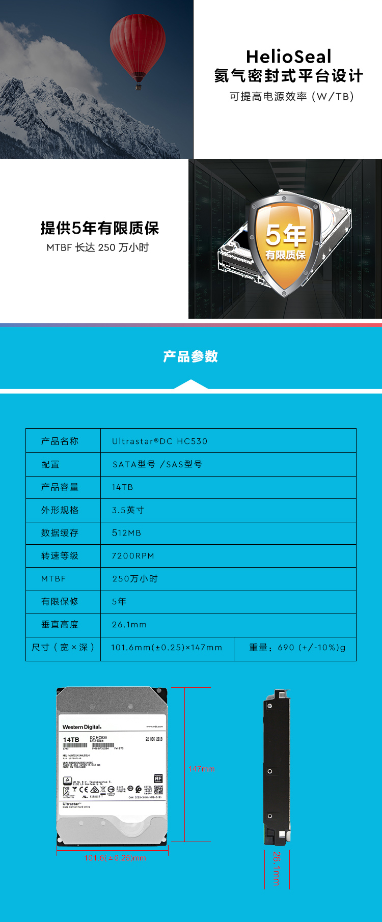 商品名称:西部数据 WD HC530 SATA6GB/S 7200转512M 14TB 企业级硬盘