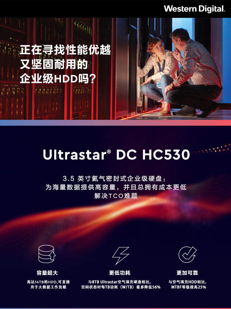 西部数据 WD HC530 SATA6GB/S 7200转512M 14TB 企业级硬盘