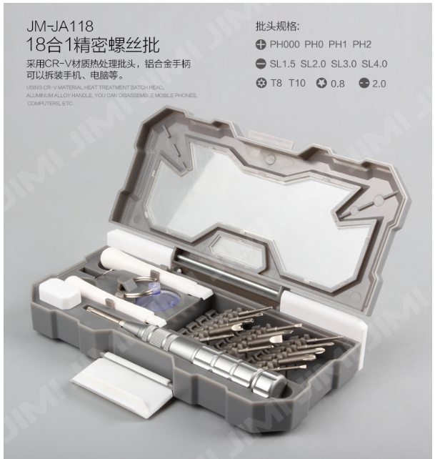 商品名称:吉米家居 JM-JA11818合1多功能精密螺丝刀套装手机钟表笔记本电脑数码维修工具起子改锥